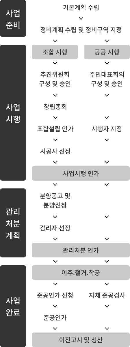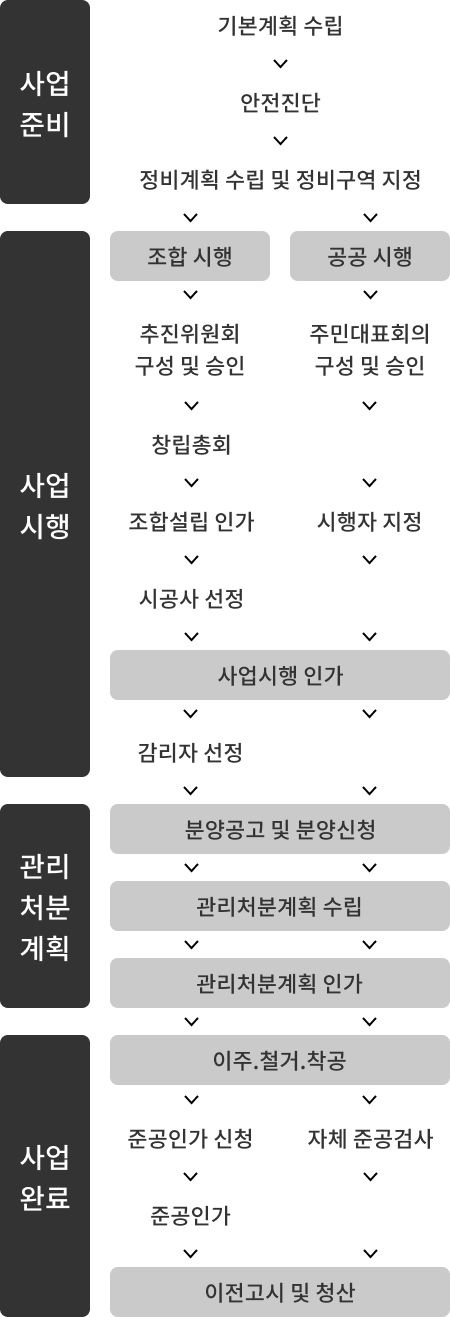 도시 및 주거환경 정비사업은 「도시 및 주거환경정비법」에서 정한 절차에 따라 도시기능을 회복하기 위해 정비구역에서 정비기반시설을 정비하고 주택 등 건축물을 개량하거나 건설하기 위한