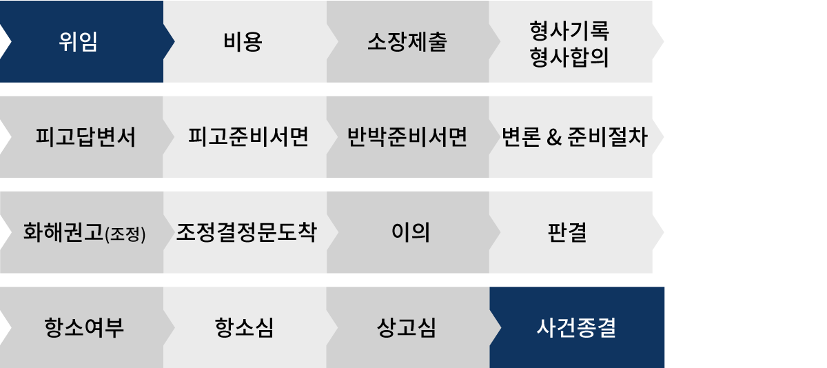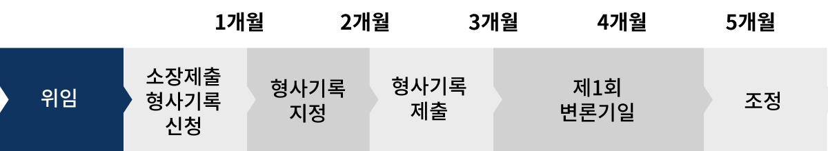 위 진행사항은 일반적인 경우이며, 형사기록의 도착, 기타 증거자료의 입수가 늦어지는 경우에는 위 기간보다 지연될 수 있습니다.