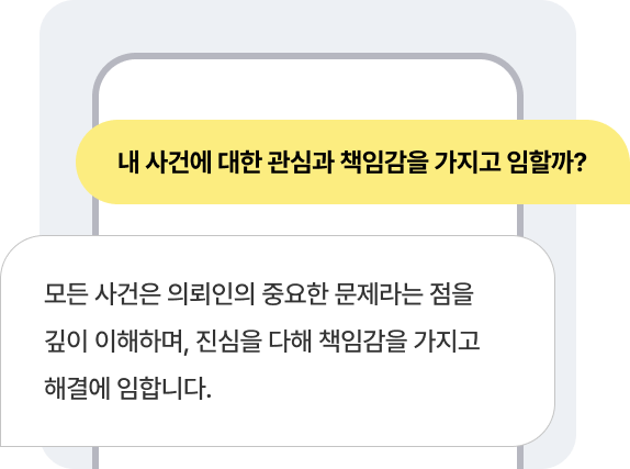 사건담당변호사 직접상담 철저한 비밀유지 의뢰인을 위한팀 배정 증거확인 및 조사 실시간 문의 및 실시간 상황확인